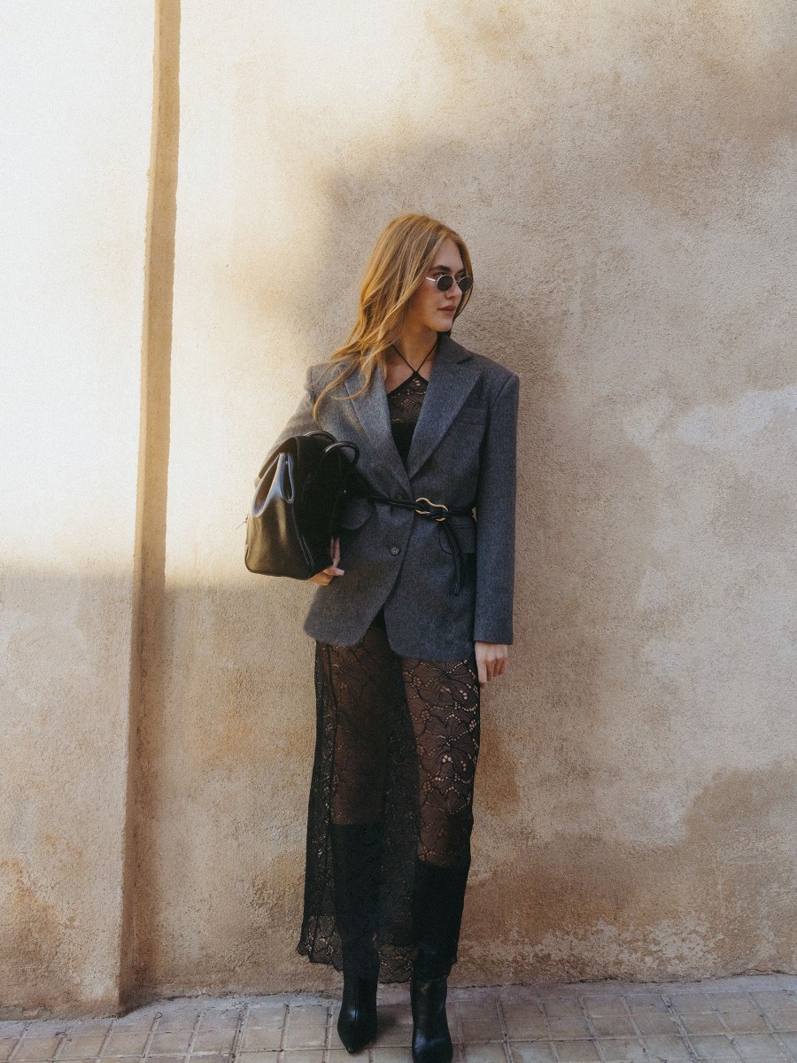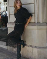 A skirt made of lace that offers both the highest quality and a unique design. The lace with a delicate floral pattern contains natural cotton in its composition, ensuring comfort and a pleasant feel. Its lightness and delicacy give every outfit exceptional elegance and character. It pairs perfectly with a classic blazer or a soft sweater. Under the skirt, you can also wear comfortable bike shorts or a knitted pencil mini skirt to create a comfortable and stylish set. Complete the entire look with your favorite high heels for an evening effect or comfortable ballet flats or ankle boots for everyday wear.