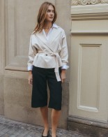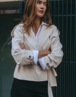 The trench coat is made from a high-quality blend of tencel and cotton. It features a loose fit, with a belt at the waist that allows you to adjust it to your figure, highlighting your shape. Unique buttons add subtle yet striking details. This trench coat will become a standout piece in your wardrobe, pairing perfectly with your favorite jeans, or tailored trousers. It is a timeless choice that will bring sophistication to any outfit.