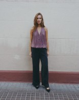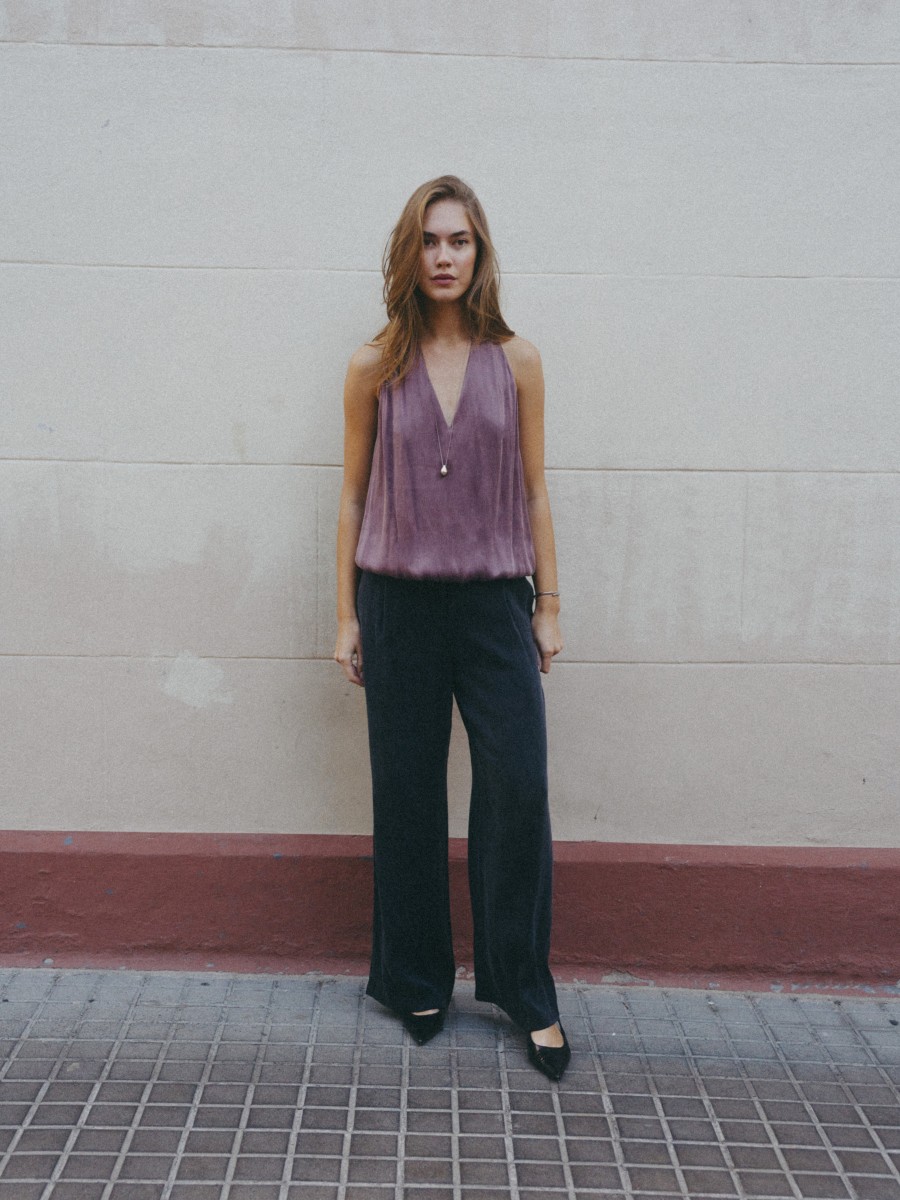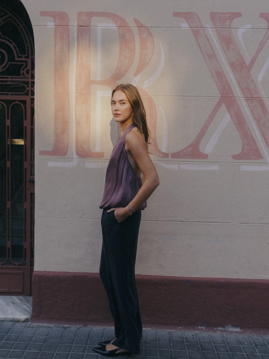 The Mira top is a decidedly bold proposition that instantly catches the eye. It features a charming bubble hem that, thanks to a discreet elastic band at the bottom, drapes perfectly to flatter your silhouette. The fabric is a blend of cupro and viscose with a delicate sheen– it's not only beautiful but also pleasant to wear. The true highlight of this top, however, is the back. Fastened with elegant buttons, it reveals a tasteful open-back detail. This is a perfect touch that emphasizes sensuality and adds a hint of romance. Versatile for many occasions, this top works just as well for everyday wear as it does for a romantic date or an evening party. In the Mira top, you are guaranteed to turn heads and feel exceptional.