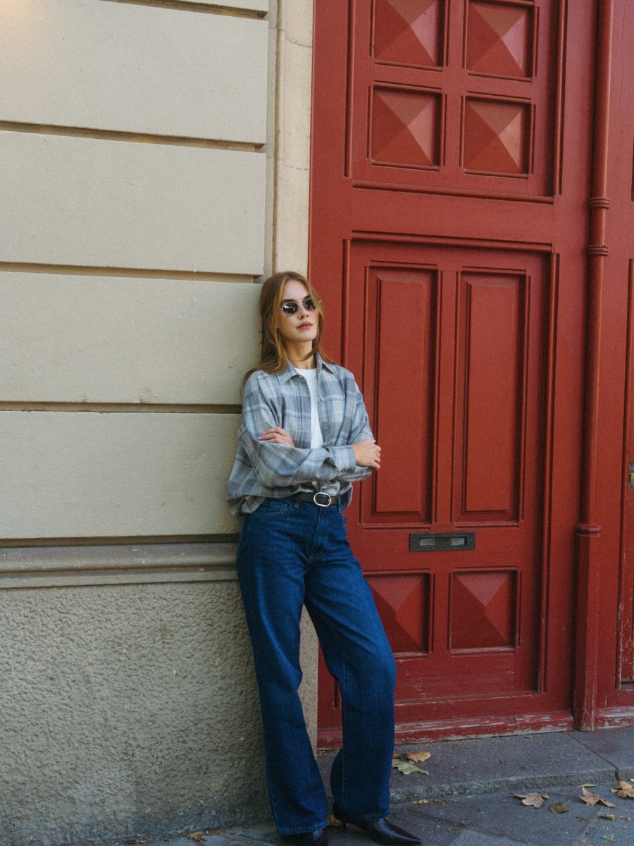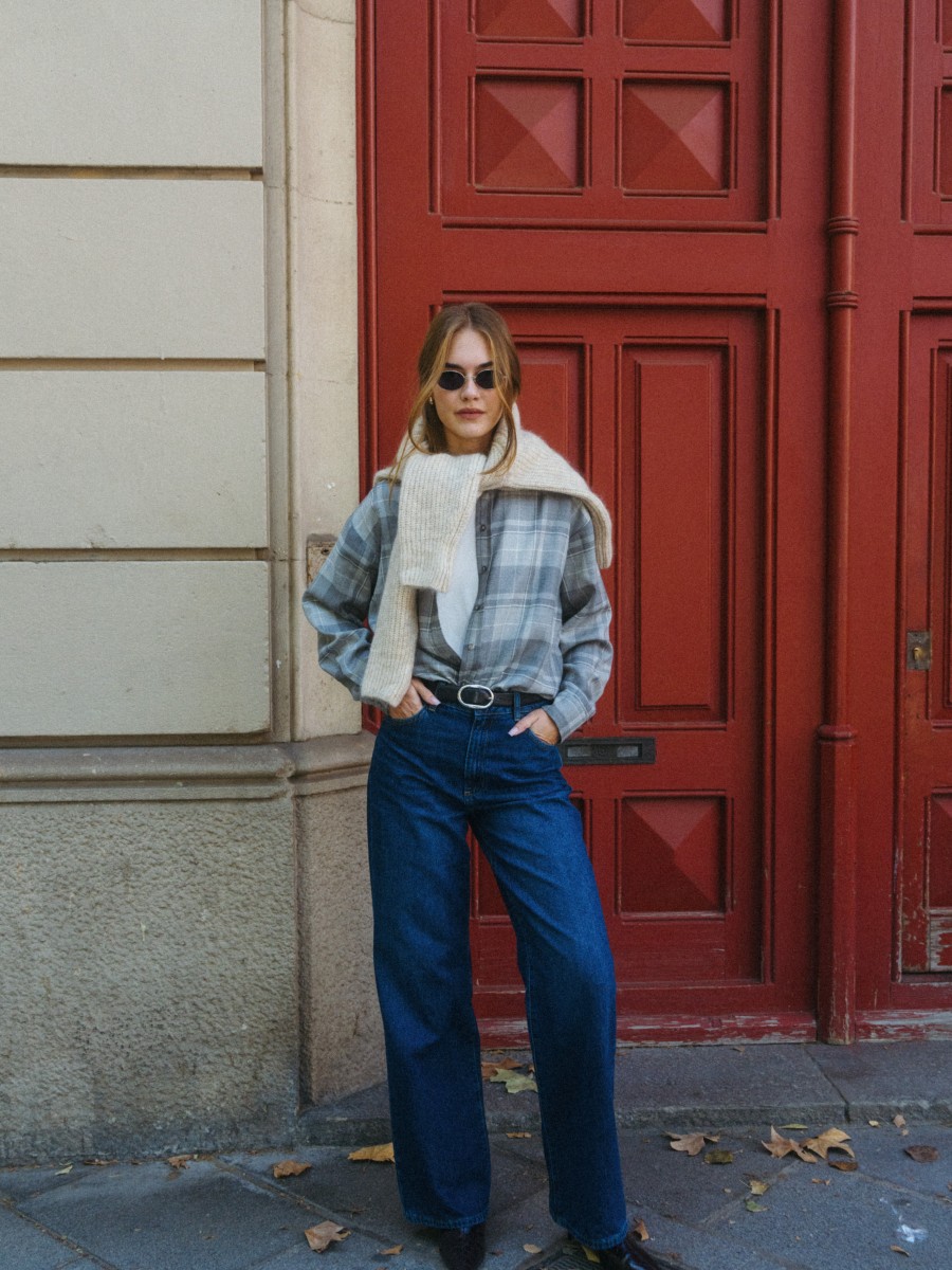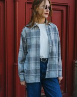 The oversize checked shirt in shades of grey is a must-have this season. The oversize checked shirt in shades of grey is a must-have this season.Made from soft wool, it’s incredibly gentle, warm, and comfortable to wear. Its relaxed, timeless cut gives it an effortlessly chic feel and makes it easy to style in many ways. Wear it open over your favorite T-shirt for a laid-back look, or tucked into trousers to highlight your silhouette.