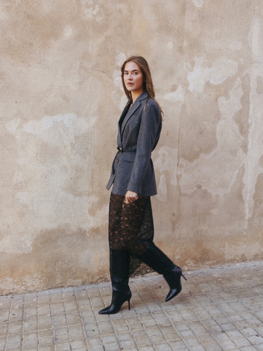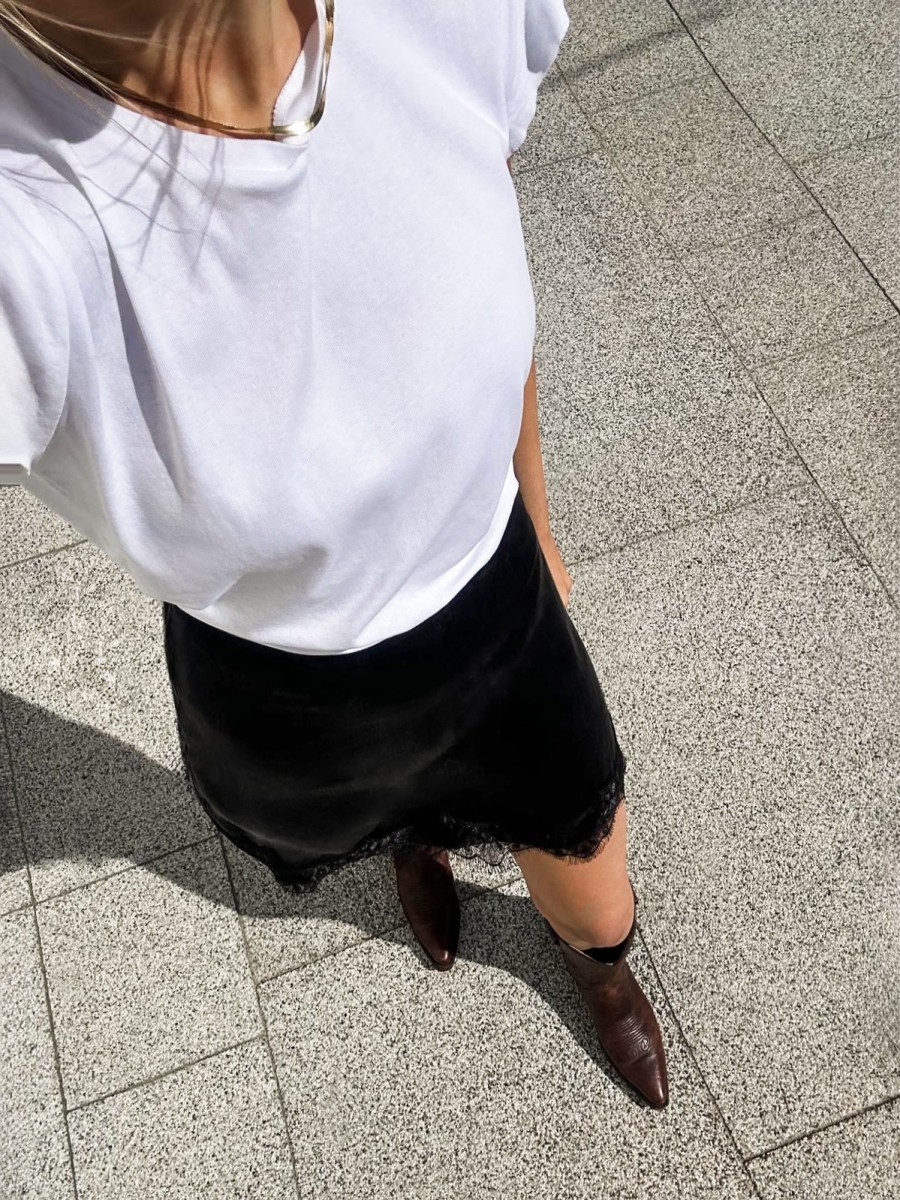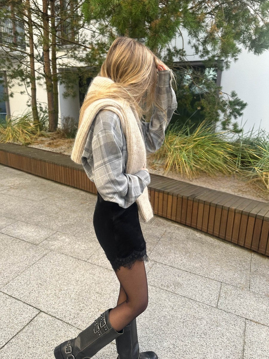 Spódniczka Jolie to kwintesencja elegancji i szyku. Wykonana z tkaniny łączącej cupro i wiskozy w odcieniu czerni. Wykończona francuską koronką, która dodaje klasy całej stylizacji. Stwórz z nią niezliczoną ilość stylizacji: od casualowej pary z białym t-shirtem, przez przytulny zestaw z naszym sweterkiem Muse, po elegancki outfit dopracowany klasyczną marynarką. Ta spódniczka naprawdę pasuje do wszystkiego!