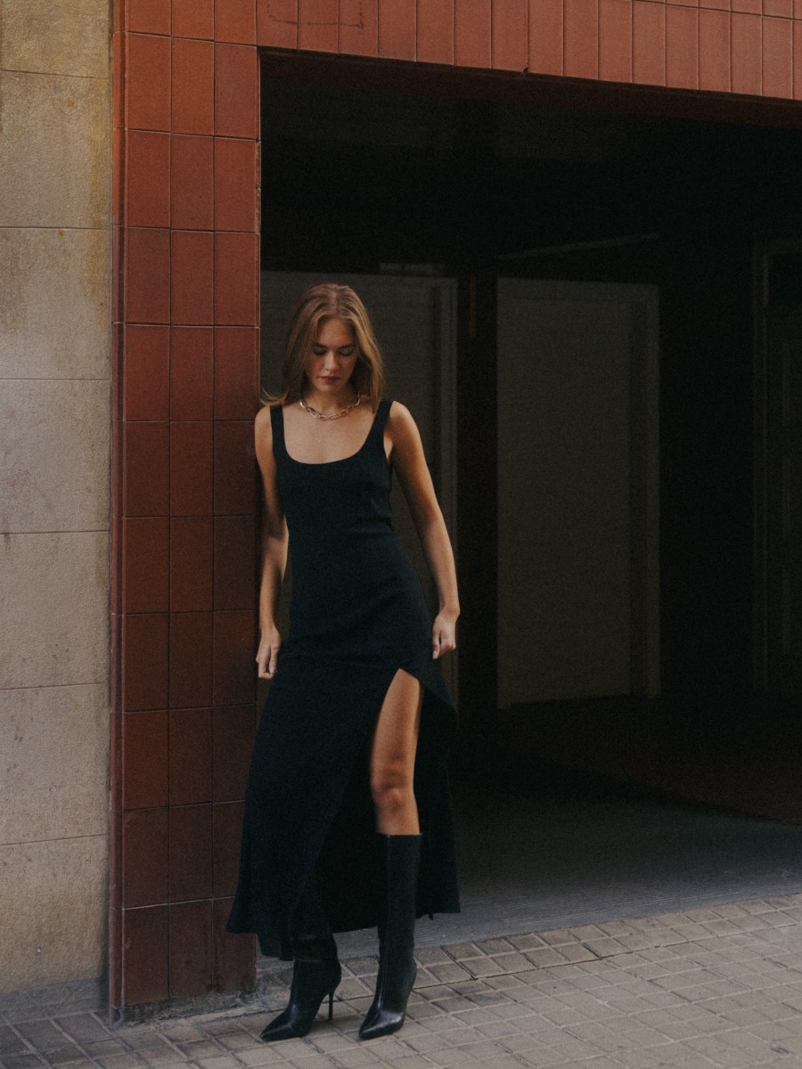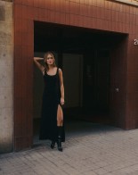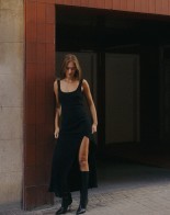 Czarna sukienka Roma zachwyca swoją prostotą i jest to must-have tego sezonu. Sukienka maxi uszyta z kreszowanej tkaniny o subtelnej strukturze, wzbogacona o dyskretny zamek. Zmysłowy rozporek na nodze nie tylko zapewnia swobodę ruchu, ale również dodaje kobiecego uroku i nuty seksapilu. Możesz założyć do niej szpilki na wieczorne wyjście, czy kozaki idąc na lunch z przyjaciółką. W zależności od dodatków i obuwia może mieć elegancki charakter lub bardziej codzienny. Noś ją z naszą wełnianą marynarką Dylan.